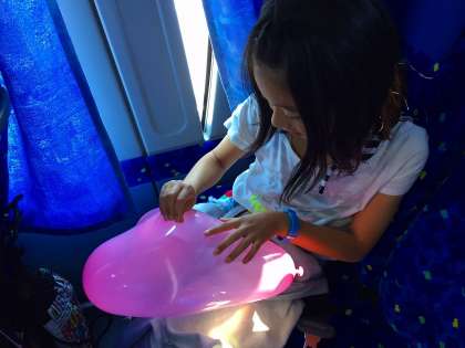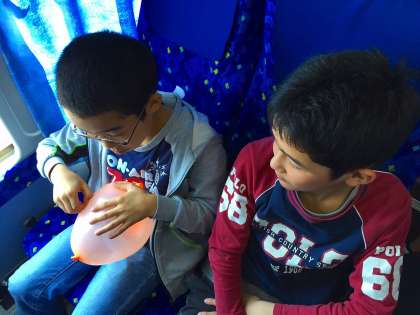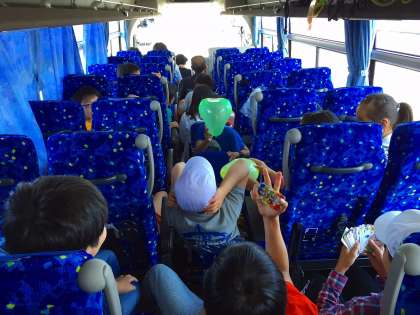 9時40分ごろに西宮北を通過しました。バスの中では、風船割りゲームをして盛り上がっています。