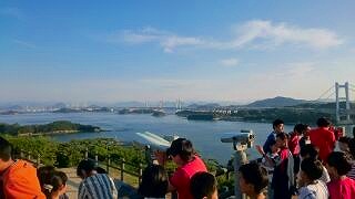 鷲羽山展望台に到着しました。瀬戸大橋,瀬戸内海,そして島々,今日の最後の訪問地鷲羽山からの眺めは格別のものがありました。
