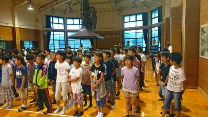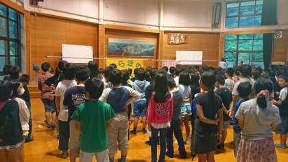 おはようございます。みさきの家2日目の活動が始まりました。雨が降っていますが,みんな元気です。写真は朝のつどいの様子です。