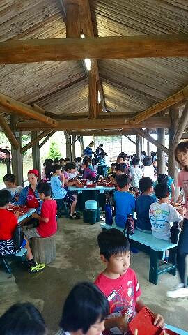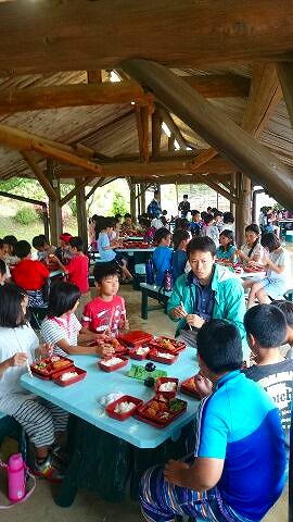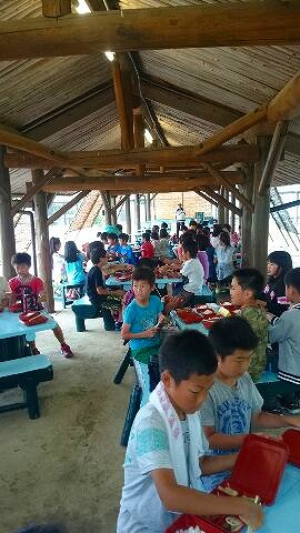 11時から昼食をとっています。昼から大野浜に,ストーンペインティングの石を拾いに行きます。