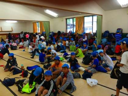 朝の様子です。朝のつどい,朝食の後,荷物整理をします。