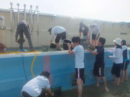 午前中に5年生6年生がプール掃除をしました。午後3時40分からは教職員が仕上げをしました。