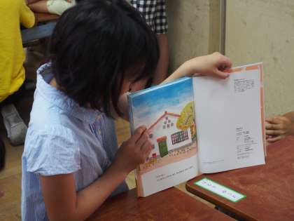 さすが6年生です。口調や声の大きさを変えながら,上手に読み聞かせを行っていました。1年生にも楽しんでもらえたようです。