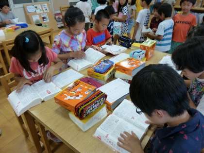 辞書引き大会の様子です。全員が集中し,白熱していました。