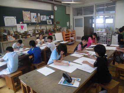 各クラス,1つの物語のお話の内容をイメージして物語の絵をかいています。
