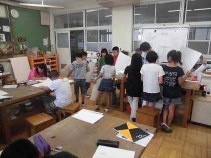 図工科の学習では各クラスがお話の絵の制作に取り組んでいます。