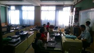 コンピュータ部,剣道部,美術部です。本校の卒業生も説明をしてくれています。