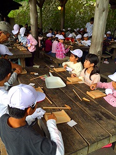 竹はし作りがスタートしました! ご飯で使うはしを自分で作ります。