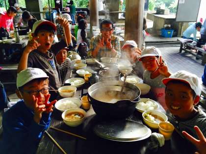 夕御飯の豚汁を美味しくいただきました! 今から後片付けをして、お風呂です。みんな元気です! 涼しくて、過ごしやすいです。
