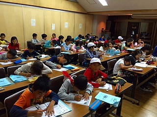 離れた場所からお家の人へ、日頃の思いを考え、手紙に表わしています。みんな、真剣です。花背の夜は涼しく、半袖だと、少し肌寒く感じます。