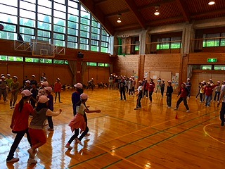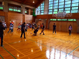 スポーツ大会。はじめは、ドッジビー対決です。先生チームもあります。