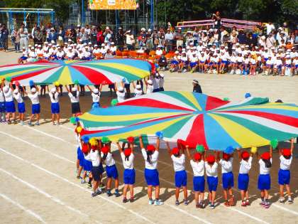 2年生の「リズムにのってバンバンバン」の様子です。練習の成果を発揮して,力いっぱい表現しました。