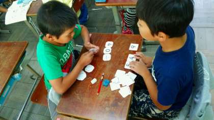 2人組でカードを使いわり算ゲームをしました。これまでの学習を生かし,3枚ずつのカードを選び,わる数とわられる数を作って計算しました。あまりの少ない方が勝ちです。とても意欲的にわりざんゲームに取り組んでいました。