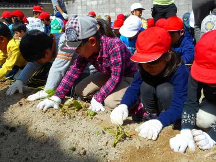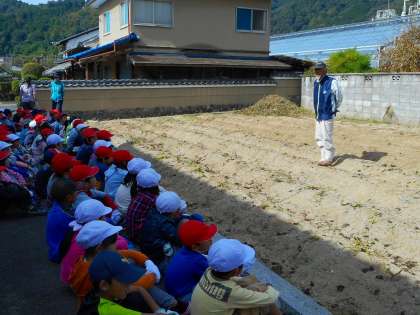 15日にいもほりをしました。初めに1年生が畑に行き,続いて2年生が行っていもほりをしました。地域の方からいもほりのしかたを教えていただき,一人一人がいもを掘り出していきました。