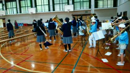 7日(土)にひらぎのふれあいコンサートが西賀茂中学校でありました。例年本校の体育館で行っていますが,今年は改修工事のため中学校をお借りしました。ホリーズの子どもたちは,中学校に到着した後,中学生との合同演奏の練習をしました。また,受付も担当しました。
