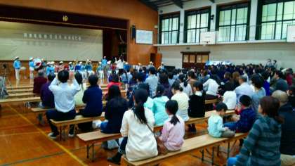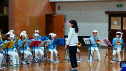 小中学校で「ようかい体操第2」を演奏し,園児たちが踊りました。