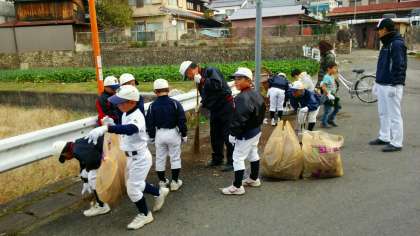 子どもたちも地域の方に協力して清掃活動を行いました。