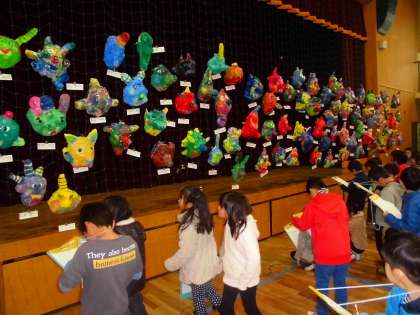 2年生の子どもたちは,2年生や他の学年の作品を鑑賞して,作品良さや工夫してあるところを見つけていました。