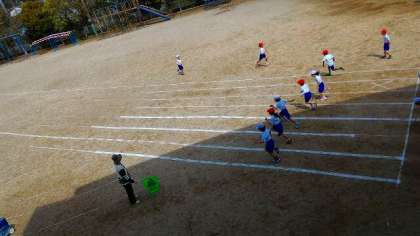 2年生は2時間目に学年全体で50メートルのタイム計測をしました。みんなゴール目指して力いっぱい走っていました。