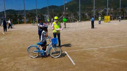 昨日からの雨は,明け方にあがりました。柊野小学校の運動場は,水はけがよく予定通り自転車教室を行いました。