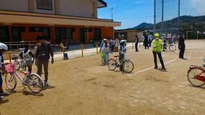 北警察署や地域の方,保護者の方に教えていただきながら練習をし,一人一人が実技試験をしました。今日学んだことをこれから自転車に乗るときに生かしてほしいと思います。お世話になった北警察署や地域の皆様,保護者の皆様,長い時間ありがとうございました。