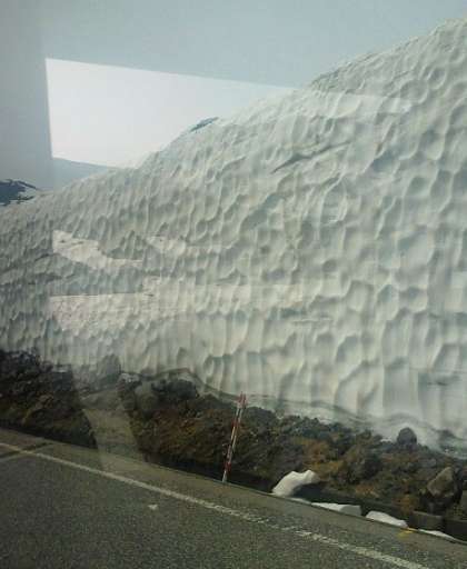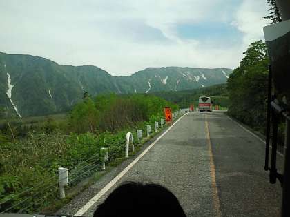 午前9時40分 もうすぐ室堂に着きます。快晴です。子どもたちも雪の景色を見て,はしゃいでいます。写真はバスからの景色です。