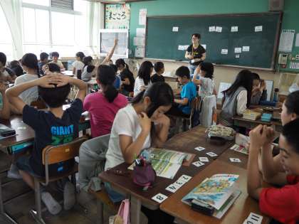 国語科「学級討論会をしよう」で初めて討論会をしました。司会グループ・肯定グループ・否定グループ・話を聞くグループに分かれて話し合い,聞きあいました。いろいろな視点の意見が出ていてました。