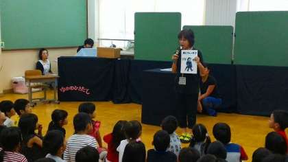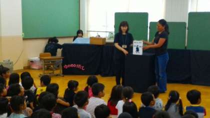 本校では,年間を通して「ゆめのひきだし」のみなさんに本の読み聞かせをしていただいています。9日(木)の5時間目には1年生が生活室で本の読み聞かせをしていただきました。いろいろなお話を読み聞かせいただいて,子どもたちはとてもうれしそうでした。