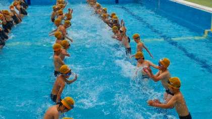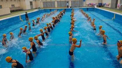 かにや,うさぎ,わになどの動物になって水中を移動しました。17日からは,3年生以上の水泳学習も始まります。