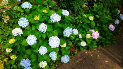 アジサイの花がきれいに咲いています。