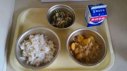 こまつなときりぼしだいこんのにびたし,牛乳,げんまいごはん,にくじゃが(ピリカラみそあじ)でした。