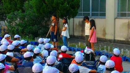 校長先生のお話や引率の先生・ボランティアの方の紹介の後,児童代表が出発の言葉を伝えました。