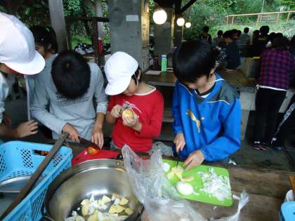 包丁を使うのにも慣れてきて,野菜を同じ大きさに手際よく切っていました。ハッピーキャロットをつくっているグループもありました。