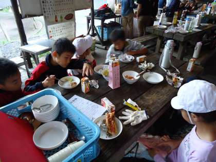 出来上がったパックドックを,みんなおいしそうに食べていました。