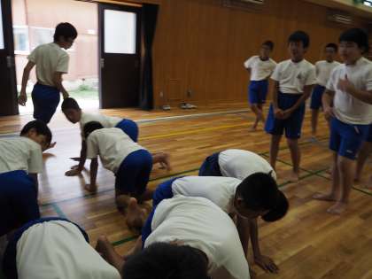 夏休み明けから始まった組体操の練習,子ども達に毎日汗を流して一生懸命に頑張っています。足先,指先まで神経を使って取り組んでいます。本番,お楽しみに!