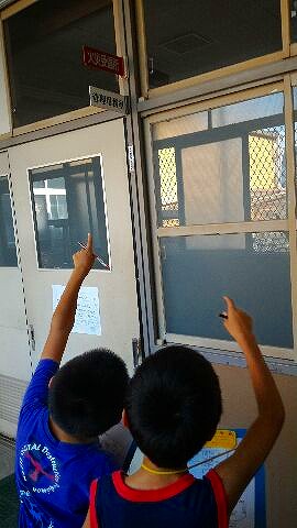 4年生の社会科では「安全なくらしを守る」の学習をしています。今日の6時間目には,探検バックにプリントをはさんみ,学校の中のどこに消防設備があるかを調べていました。