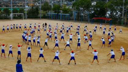 子どもたちは,踊りや動きを覚えて力いっぱい踊っています。みんなリズムをつかみ,隊形移動も上手になってきました。