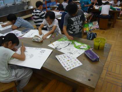 今回は,場の雰囲気や自分の思いが表れるように,形や色の効果を考えて着色をしました。
