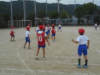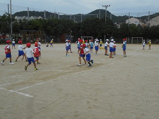 今日の体育科の時間に3年生の1組対2組でエンドボールの試合をしました。