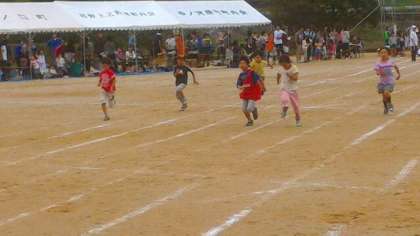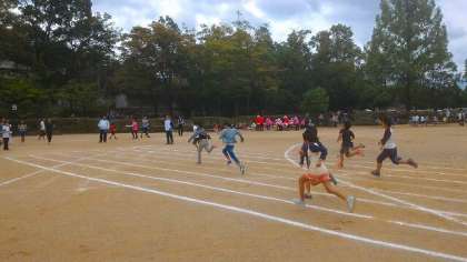 10月9日日曜日に第37回柊野学区民体育祭が,柊野グランドで行われました。本校児童も多数参加しました。写真は徒競走の様子です。
