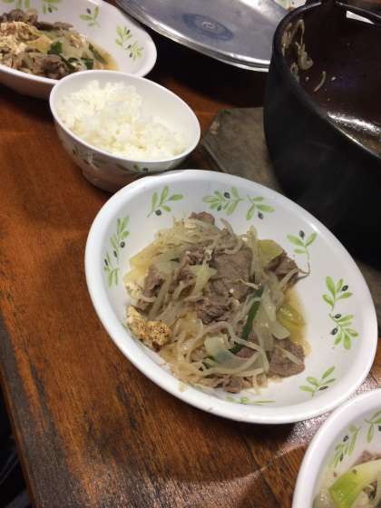 今からご飯です。すきやき風にができました。みんな美味しいと言って満足そうです!