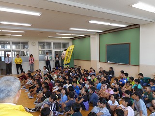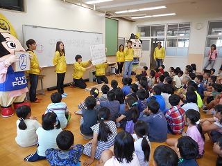 1時間目に防犯教室を行いました。京都産業大学のサギタリウスチームのみなさんと北警察署の方にお越しいただき,クイズ形式で防犯ついて学びました。防犯ブザーはすぐに鳴らせるようにしておくことや,夜は明るい道を歩くこと,声をかけられても知らない人の自動車には乗らない・近づかないことなどを学びました。なお,今回お世話になったサギタリウスチームのみなさんは日頃から校区の見回りをしてくださっています。
