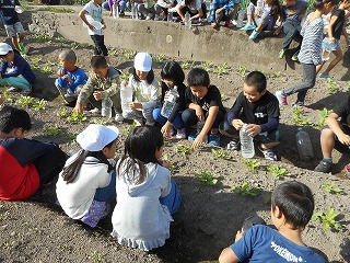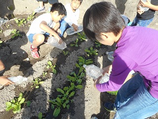 「総合的な学習の時間」で,大根の水やりに行きました。
