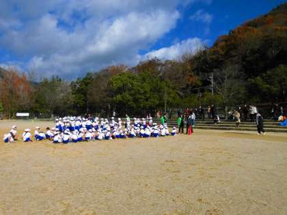 今朝は冷え込みましたが,晴天の下でマラソン大会を行いました。会場は昨年から柊野グランドを使用させていただいています。