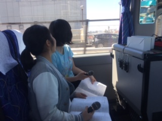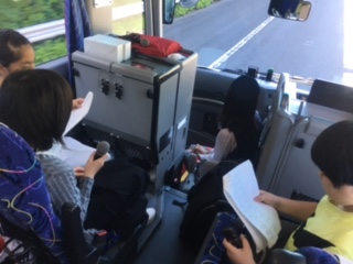 バスの中は盛り上がっています。