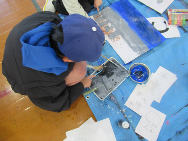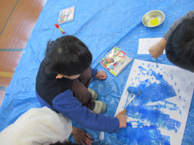文字を書いたり、画用紙を絵の具で塗ったりしました。小さな巨匠展の展示が楽しみですね♬