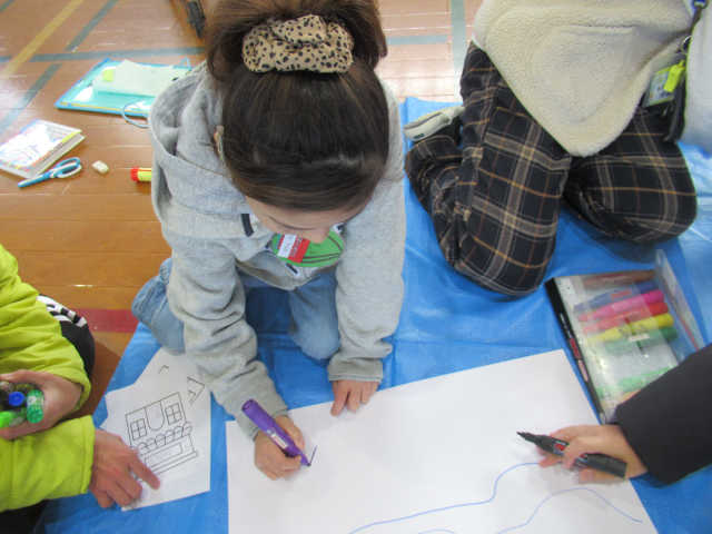 各グループに分かれ、作った作品を紹介したり、展示するための土台を作ったりしました。