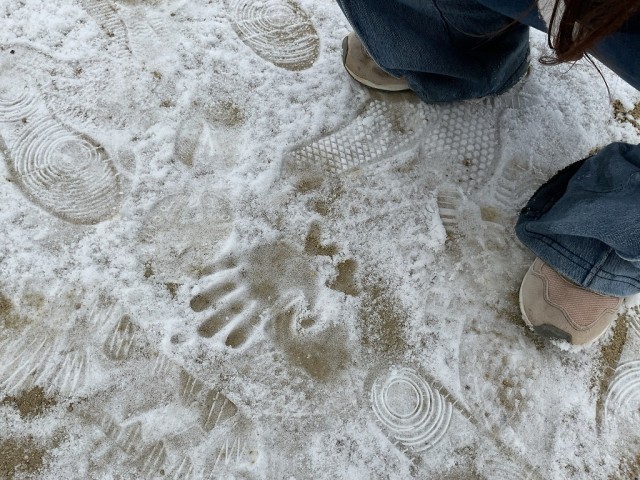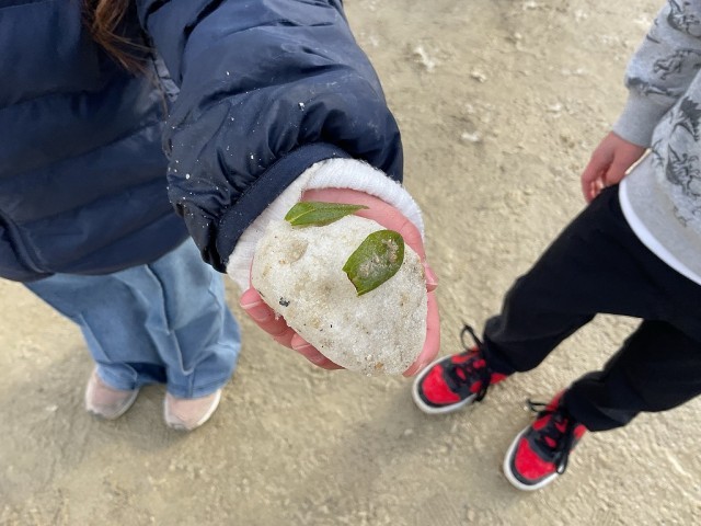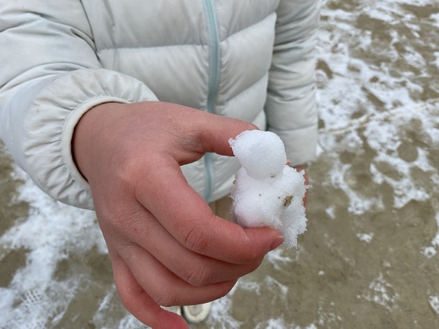 今日は残念ながら雪があまり積もらず、子どもたちが考えていた雪玉を使った氷鬼は出来ませんでしたが、雪だるまや雪うさぎを作ったり、手形を押してあそんだりしていました。