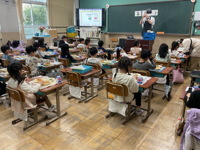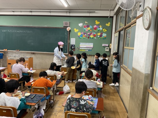 おかわりをする子もたくさんいました。みんな「おいしい!」とにこにこ笑顔で給食を食べていました。