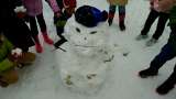 2年生の子どもたちが雪だるまをつくっていました。みんなで協力して大きな雪のかたま...